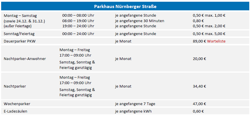 In den Parkhäusern Nürnberger Straße und Kinopolis 2 bitten wir die Kunden, nicht rückwärts einzuparken.